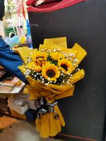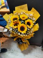 Bring sunshine to someone’s day with the vibrant Golden Sunflower Delight Bouquet. Featuring fresh, radiant sunflowers paired with delicate baby’s breath fillers, this bouquet symbolizes happiness, positivity, and warmth. The bold yellow blooms are beautifully arranged to create a cheerful and eye-catching display.
