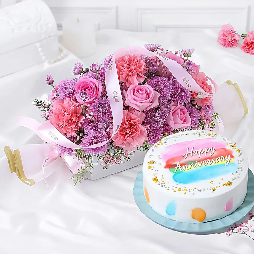 Pastel Charm Blooms & Pineapple Cake Combo – Anniversary Special